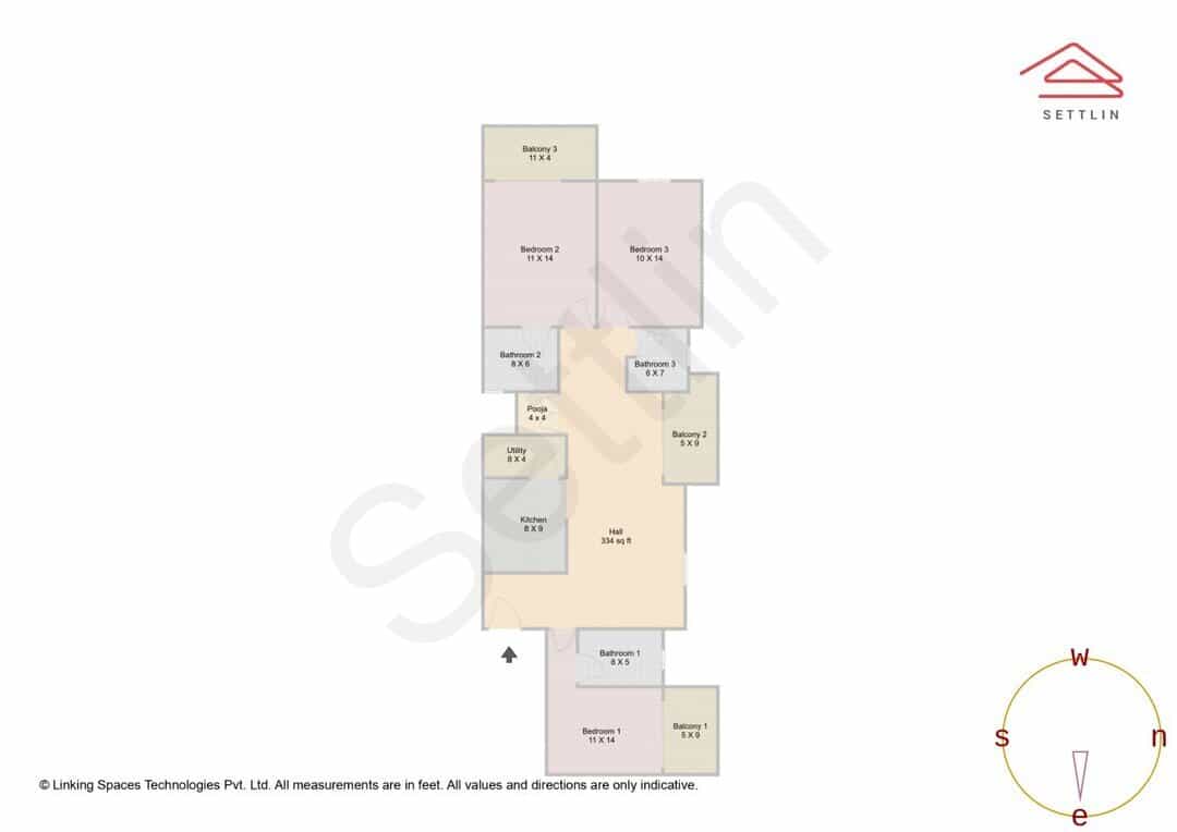The contents of this website are for general information purposes only. While we verify the details with the owners/builders at regular intervals to ensure the accuracy of the data, we have not done any legal verification till date. Readers are requested to make an enquiry either independently or through us before relying upon the same. In no event will Settlin (Linking Spaces Technologies Pvt Ltd) offer any warranty on the information made available, or be liable for any loss or damage including without limitation, indirect or consequential loss or damage in connection with the use of information in this website. By using or accessing this website, you agree with this Disclaimer without any qualification or limitation. Design, specifications, floor plans, photographs, brochures and interactive plans etc., are subject to change without prior notice. RERA ID: PRM/KA/RERA/1251/446/AG/180205/001849 (Linking Spaces Technologies Pvt Ltd)