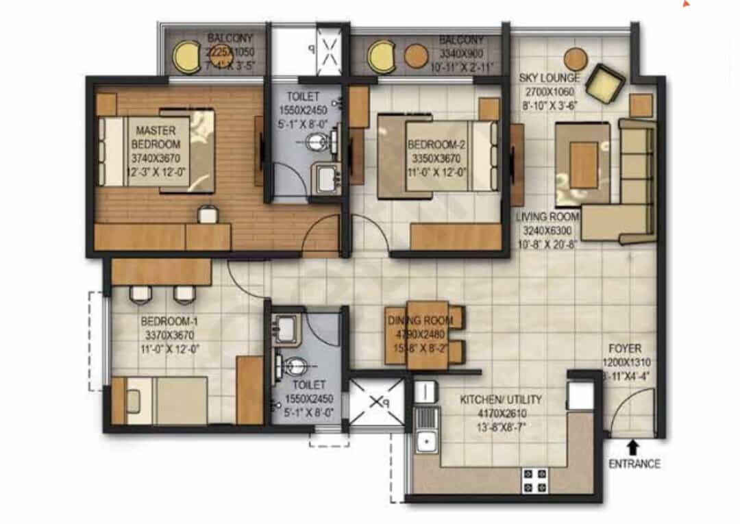 3BHK in Brigade Panorama