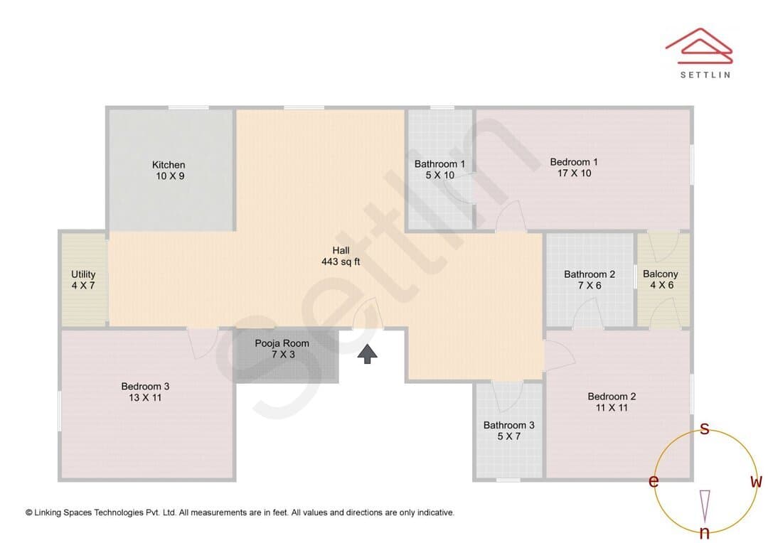 Balcony 1, Bathroom 1, Bathroom 2, Bathroom 3, Bedroom 2, Bedroom 3, Hall 1, Kitchen 1, Utility 1, Pooja Room 1